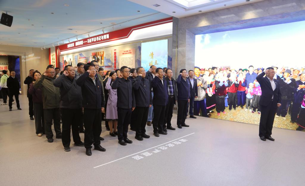 在警示教育基地,全体领导干部在讲解员的引领和讲解下,集中观看了《逐梦新青海 赶考新时代》主题教育片,依次参观了基地的主题展区,重温习近平总书记关于全面从严治党的重要论述,回顾党的十八大以来青海省全面从严治党和反腐败斗争的工作历程,取得的历史性、开创性成就。参观过程中,一个个触目惊心的案例、一段段发人深省的文字、一幅幅令人警醒的图片、一句句声泪俱下的忏悔,给大家带来了最直观的视觉冲击和心灵震撼,进一步增强了对党章党规党纪的敬畏意识,大家不时驻足细看,与周围同志交流讨论。最后,全体党员干部面对鲜红的党旗,高举右拳,重温入党誓词,追忆入党初心。