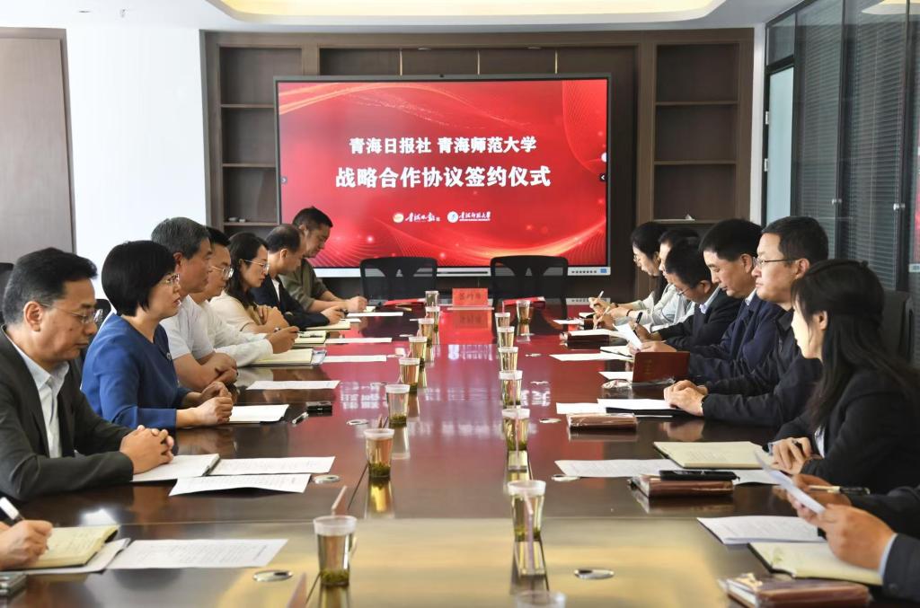 为进一步深化校媒合作,促进发展优势互补、资源共建共享,成果互惠共赢,协同打造校媒合作新样板,6月26日下午,Beat365官网与青海日报社签订战略合作协议。校党委书记毛学荣,校党委常委、副校长程剑波及学校办公室、党委宣传部、科研处、发展规划处、藏语智能全国重点实验室、新闻学院负责人,青海日报社党组书记、社长苏海红,党组成员、副社长李乃银,党组成员、副总编辑洛加才让及相关部门负责人参加签约仪式。
