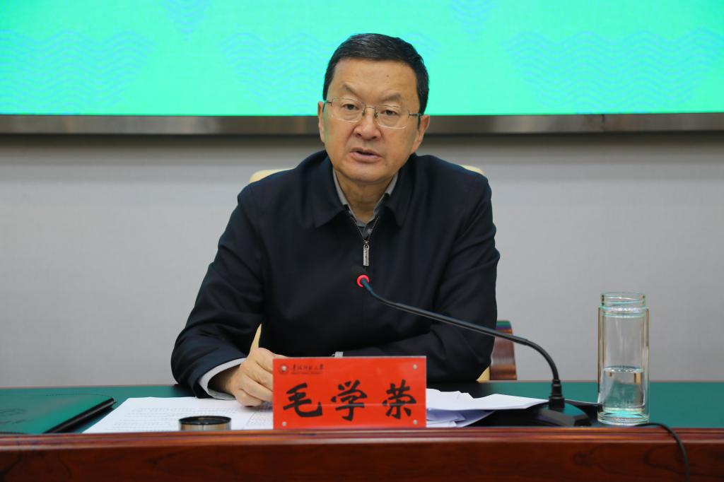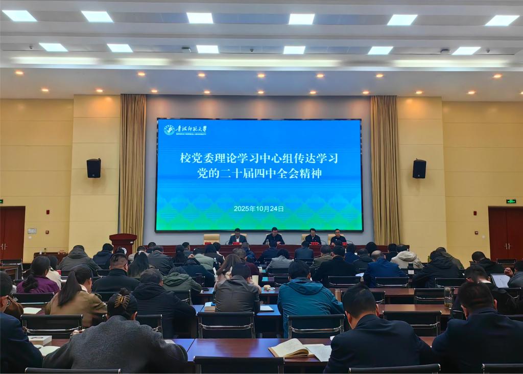 10月24日上午,Beat365中文官方网站党委理论学习中心组举行扩大学习会,校纪委书记、省监委驻校监察专员张海军领学《中国共产党第二十届中央委员会第四次全体会议公报》。校党委书记毛学荣主持并讲话,在家校领导、全校副处级领导干部参加学习会。