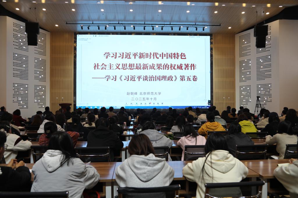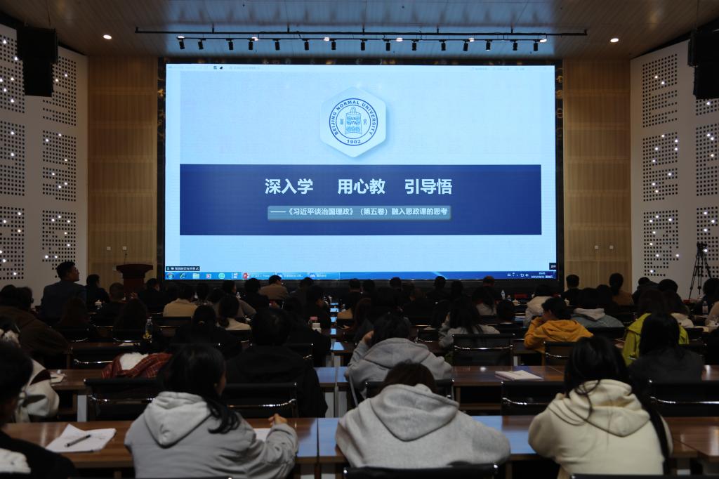 备课会第一阶段,北京师范大学赵朝峰教授以《习近平新时代中国特色社会主义思想最新成果的权威著作—— <习近平谈治国理政> 第五卷 》为题,从总体框架、形成背景、理论创新及贯彻要求四个维度,系统解读了《习近平谈治国理政》第五卷的核心要义。备课会第二阶段,北京师范大学马克思主义学院院长张润枝教授以《深入学 用心教 引导悟》为题,立足教学实践和自身学习体会,深入阐释了如何将第五卷精髓融入思政课堂。两位专家的线上专题辅导兼具理论深度与实践温度,为师生深化学习、推动习近平新时代中国特色社会主义思想入脑入心提供了重要指导,是一次极为重要的理论学习课和教学研讨课。
