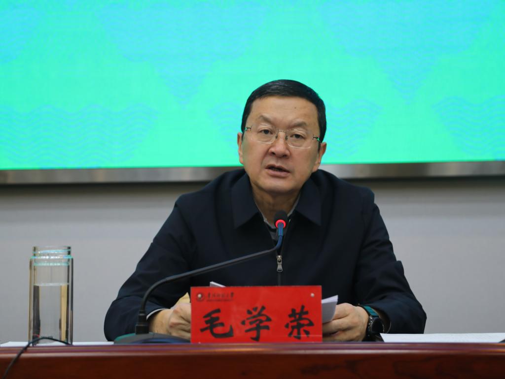 毛学荣强调,一是要坚持政治统领,在加强党的建设上抓落实见实效。要巩固拓展主题教育成果,铸牢中华民族共同体意识,不断把党的创新理论转化为指导实践、推动工作的强大力量。要持续加强党风廉政建设,不断改进工作作风。二是要坚持实干导向,在加强队伍建设上抓落实见实效。按照“干部要干、思路要清、律己要严”的要求,引导和倒逼干部观念意识、思想作风、能力素质转变和提升。三是要坚持以文化人,在加强文化建设上抓落实见实效。要深入贯彻落实习近平文化思想,构建文化育人体系,创新文化育人载体,丰富文化育人内容,促进校园文化蓬勃发展。四是要坚持底线思维,在加强安全稳定上抓落实见实效。要牢牢把握学校意识形态工作领导权,进一步完善党委统一领导、党政齐抓共管,各级党组织分工负责的意识形态工作格局。要守好校园安全稳定底线,持续开展校园安全隐患排查整治“百日会战”行动,常态化抓好消防、食品、实验室危化品、学生心理健康等安全工作。