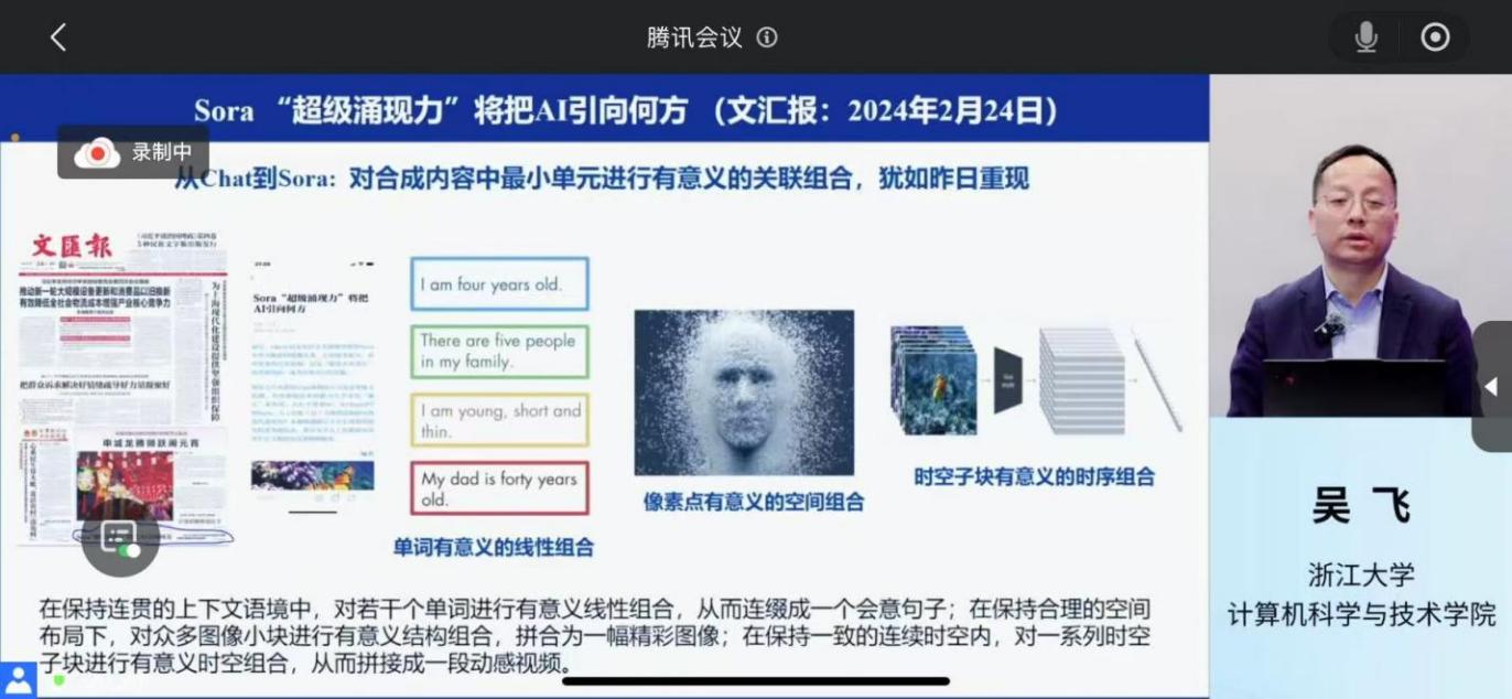 报告以人工智能技术发展脉络为主线,从现代计算机的理论模型“图灵机模型”讲起,系统梳理技术流派的演进历程。报告聚焦当代突破性进展,重点解析了AlphaGo攻克人类围棋智慧、ChatGPT掀起生成式AI浪潮、SORA重构多模态内容生产等里程碑事件,并深度剖析国产大模型DeepSeek的技术创新与生态布局。吴飞教授通过教育智能化、司法决策辅助系统、药物合成与逆合成等典型案例,深刻阐释了AI技术对传统领域的深度赋能。