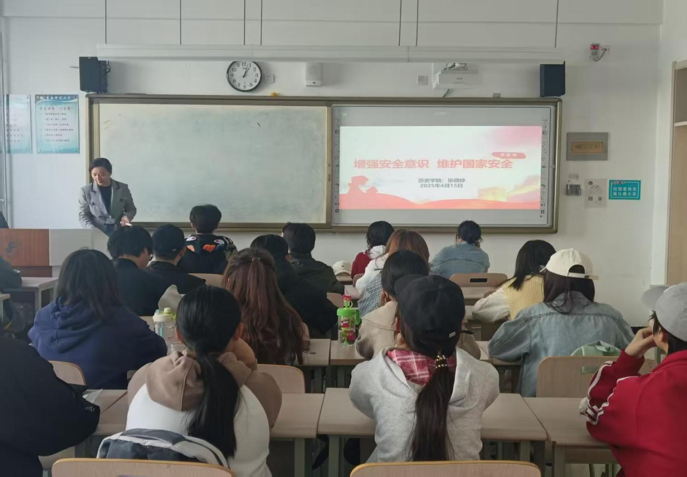 为强化师生国家安全意识,营造维护国家安全的良好氛围,4月15日,历史学院开展了以“增强安全意识,维护国家安全”为主题的思政课。思政课由学院党委书记张晓婷主讲,学院全体学生干部参加。