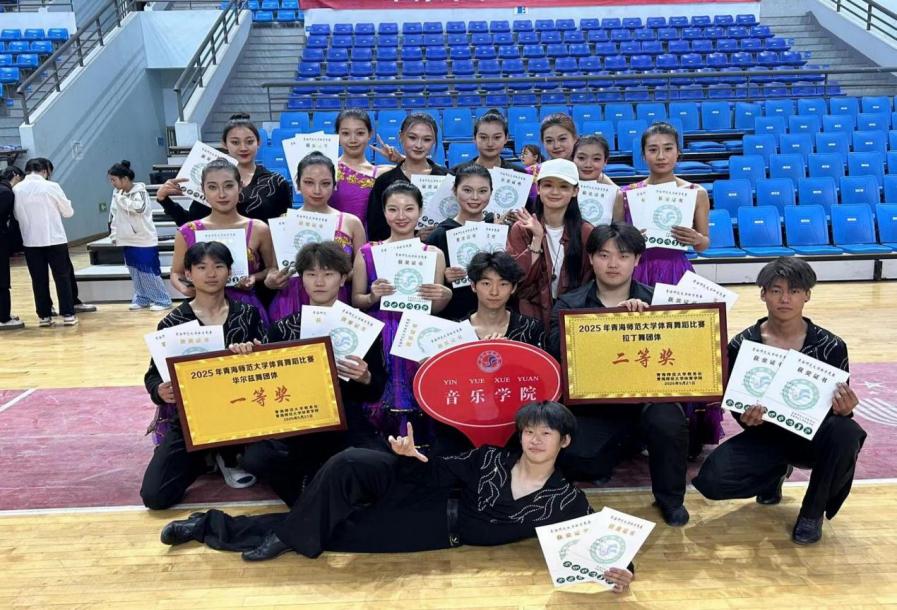 学生竞赛方面成绩斐然。在学校健身操舞比赛中,2023级舞蹈本科生凭借精准的艺术表达摘得桂冠,充分展现了过硬专业素质与协同创新能力。同时受邀参演青海文化旅游节开幕式,助力“以文塑旅”理念落地,获广泛好评。在学校体育舞蹈比赛中,2024级舞蹈本科生在华尔兹、拉丁项目中分别荣获一等奖和二等奖,为校园文化注入青春活力。