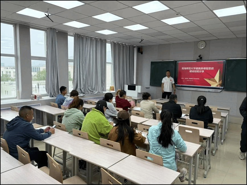 随后,教师们围绕 “如何平衡技术教学与思政教育的课时分配”“术科课程思政效果如何量化评价”“线上线下混合教学中思政元素的差异化设计”等问题展开深入探讨。何志芳主任提出,可在健美竞赛组织实践中融入锅庄舞等民族特色,将课程实训转化为思政实践课堂;新进教师时莹清博士提出将“乡村振兴中的健身指导”纳入健美实践课程的经验,通过组织学生赴农村开展健美操公益课,培养社会责任感。