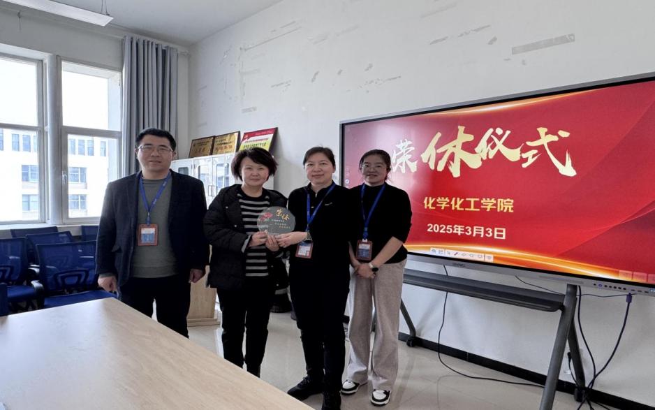 3月3日上午,化学化工学院为退休教师庆易微副教授举行荣休仪式。学院党委书记崔香代表学院表达了对庆易微老师的深切关怀与感谢,回顾了她为学院发展做出的重要贡献,颁发了荣休纪念杯,表达了对庆易微老师多年辛勤工作的敬意。