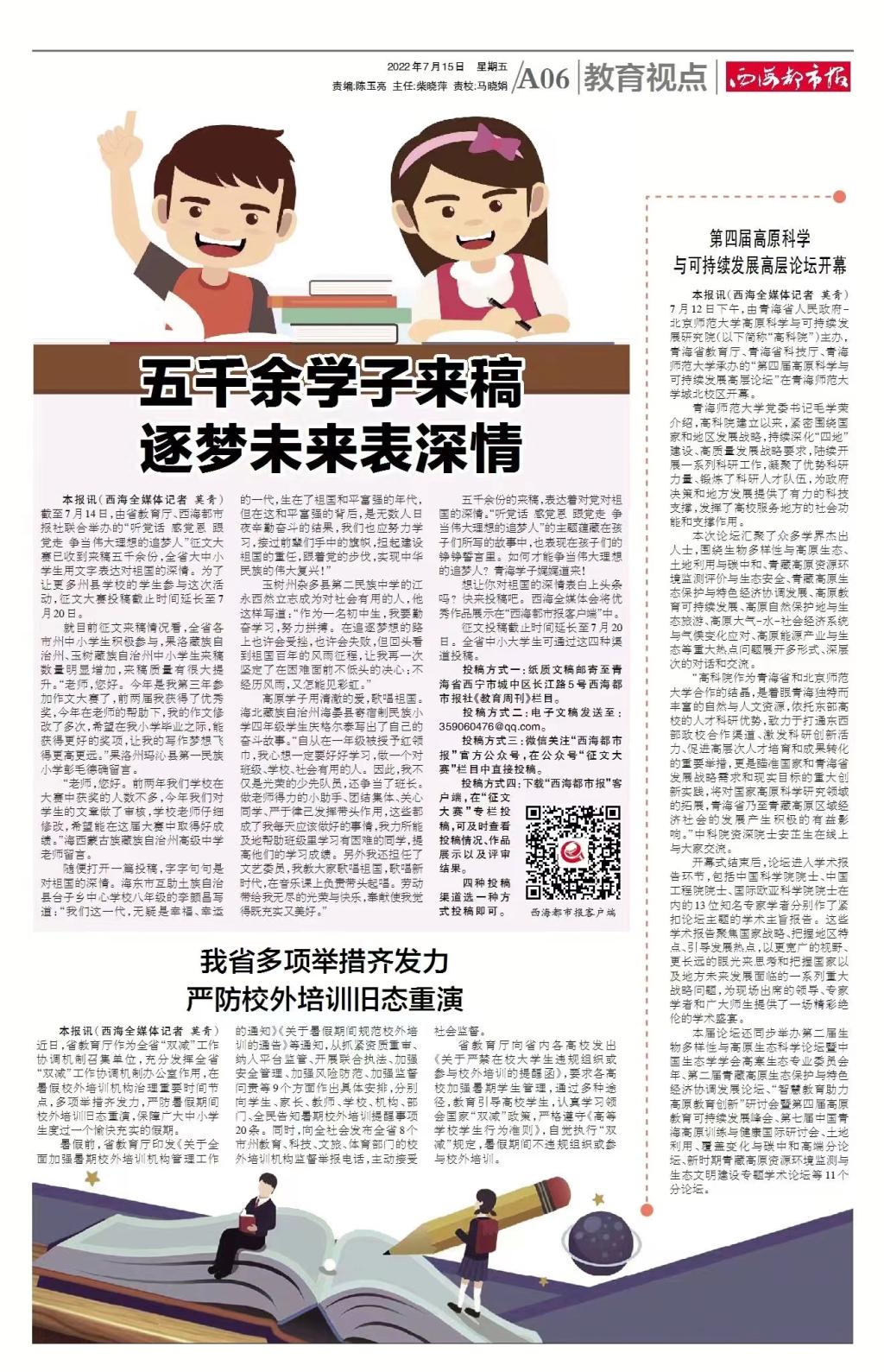 西海都市报:第四届高原科学与可持续发展论坛开幕