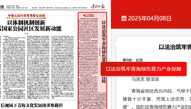 青海日报:以法治筑牢青海绿色算力产业保障
